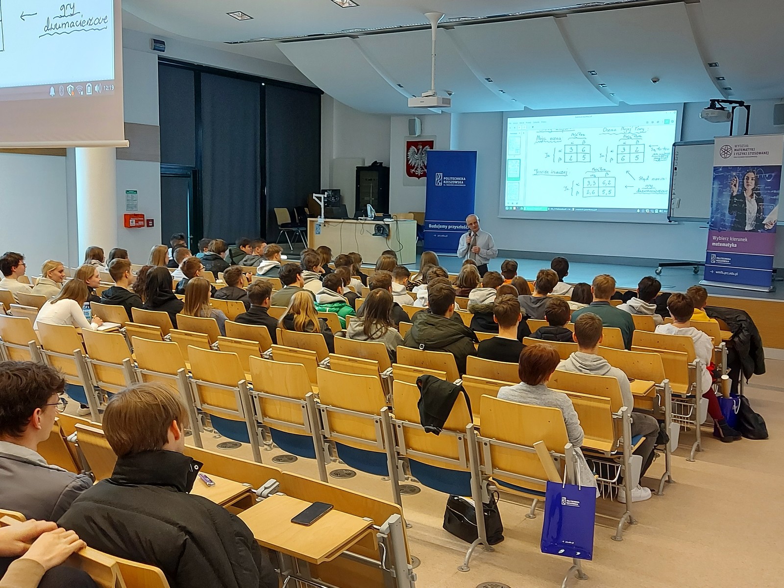 Podczas obu dni zgromadzoną młodzież uroczyście powitali rektor Politechniki Rzeszowskiej prof. dr hab. inż. Piotr Koszelnik oraz prorektor ds. kształcenia dr hab. Iwona Włoch, prof. PRz. Władze dziekańskie WMiFS w krótkiej prezentacji przedstawiły kierunki studiów prowadzone na wydziale oraz perspektywy zatrudnienia absolwentów. Inauguracje Dni Otwartych uświetniły występem artystycznym studentki kierunku matematyka Katarzyna Biela i Klaudia Bukała. Młodzież miała okazję uczestniczenia w wykładach i warsztatach, które zostały podzielone na trzy główne panele związane z kierunkami studiów: inżynierią i analizą danych, inżynierią w medycynie oraz matematyką. Panele zostały uzupełnione o pokazy z fizyki, a także o zwiedzanie wydziałowych laboratoriów oraz biblioteki. Wykłady, warsztaty i pokazy prowadzili nauczyciele akademiccy prowadzący zajęcia na wymienionych kierunkach, lekarze oraz pracownicy zaprzyjaźnionych dwóch firm medycznych ImplantCast i STRING, jak również studenci kół naukowych: Machine Learning, X-med oraz Foton. Podczas Dni Otwartych aktywny udział wzięli studenci z Wydziałowego Samorządu Studenckiego oraz studenci WMiFS, którzy chętnie opowiadali uczniom o studiach w trakcie zwiedzania wydziału.