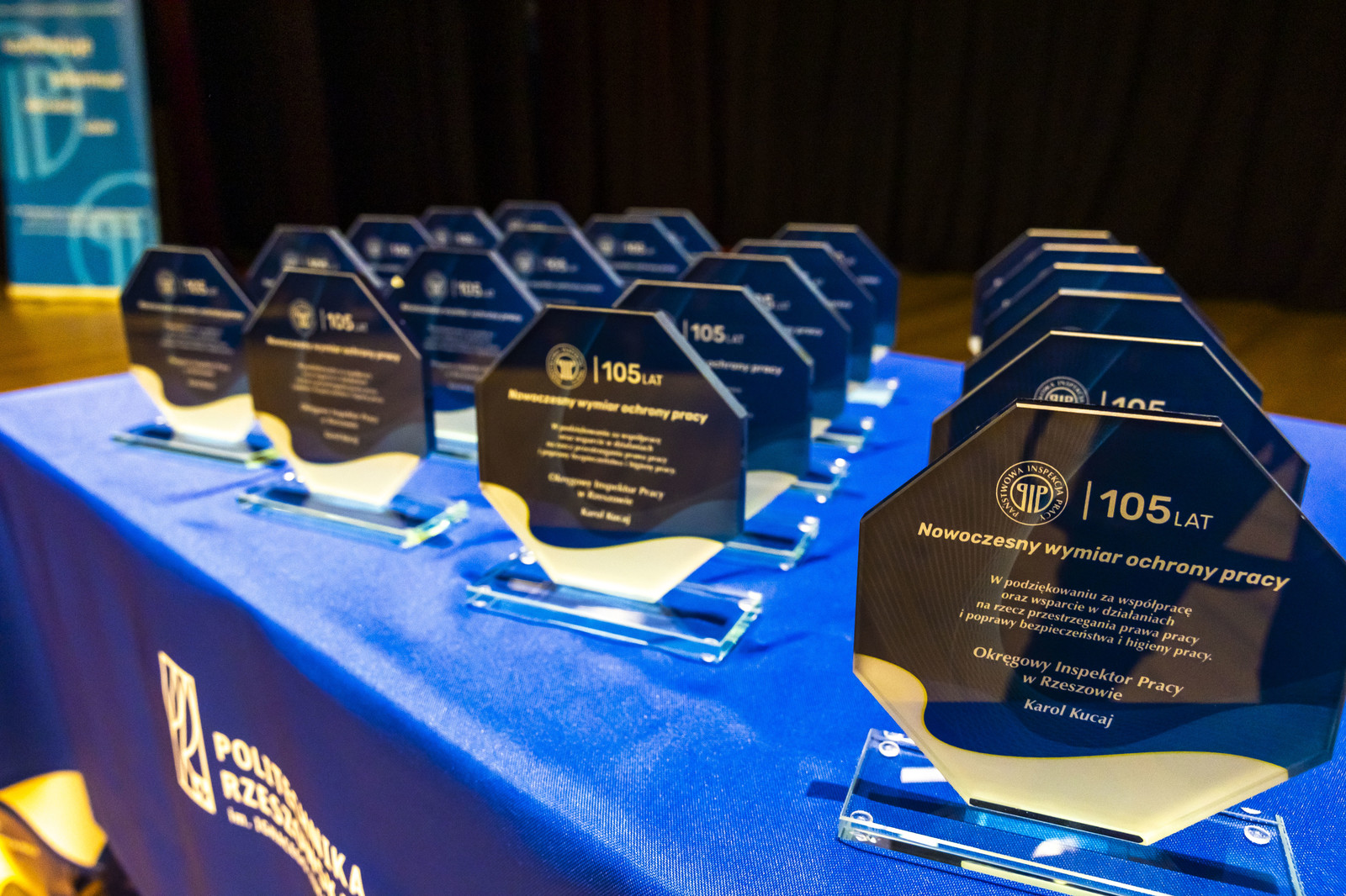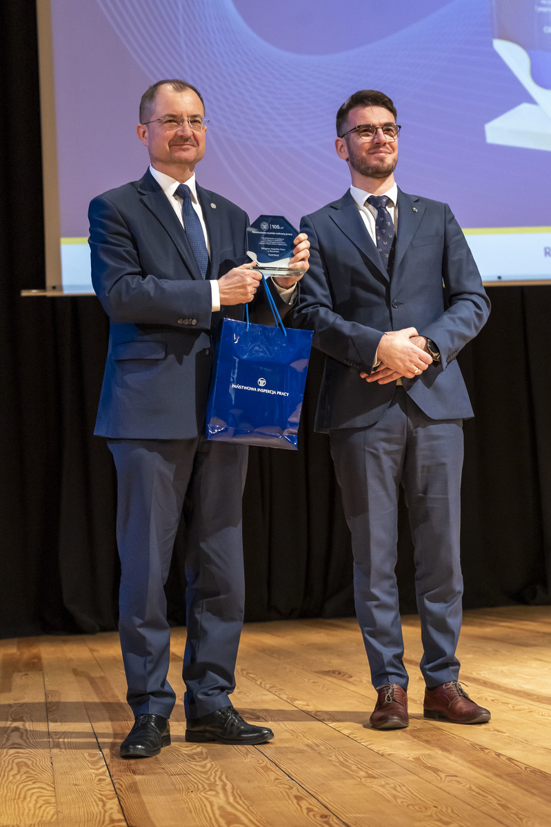 Z okazji jubileuszu Państwowej Inspekcji Pracy Okręgowy Inspektor Pracy w Rzeszowie Karol Kucaj podjął decyzję o wyróżnieniu i podziękowaniu za współpracę i wsparcie w działaniach na rzecz przestrzegania prawa pracy oraz poprawy bezpieczeństwa i higieny pracy zaprzyjaźnionym instytucjom. Wyróżnienie otrzymała również Politechnika Rzeszowska. Statuetkę odebrał rektor naszej uczelni prof. Piotr Koszelnik.