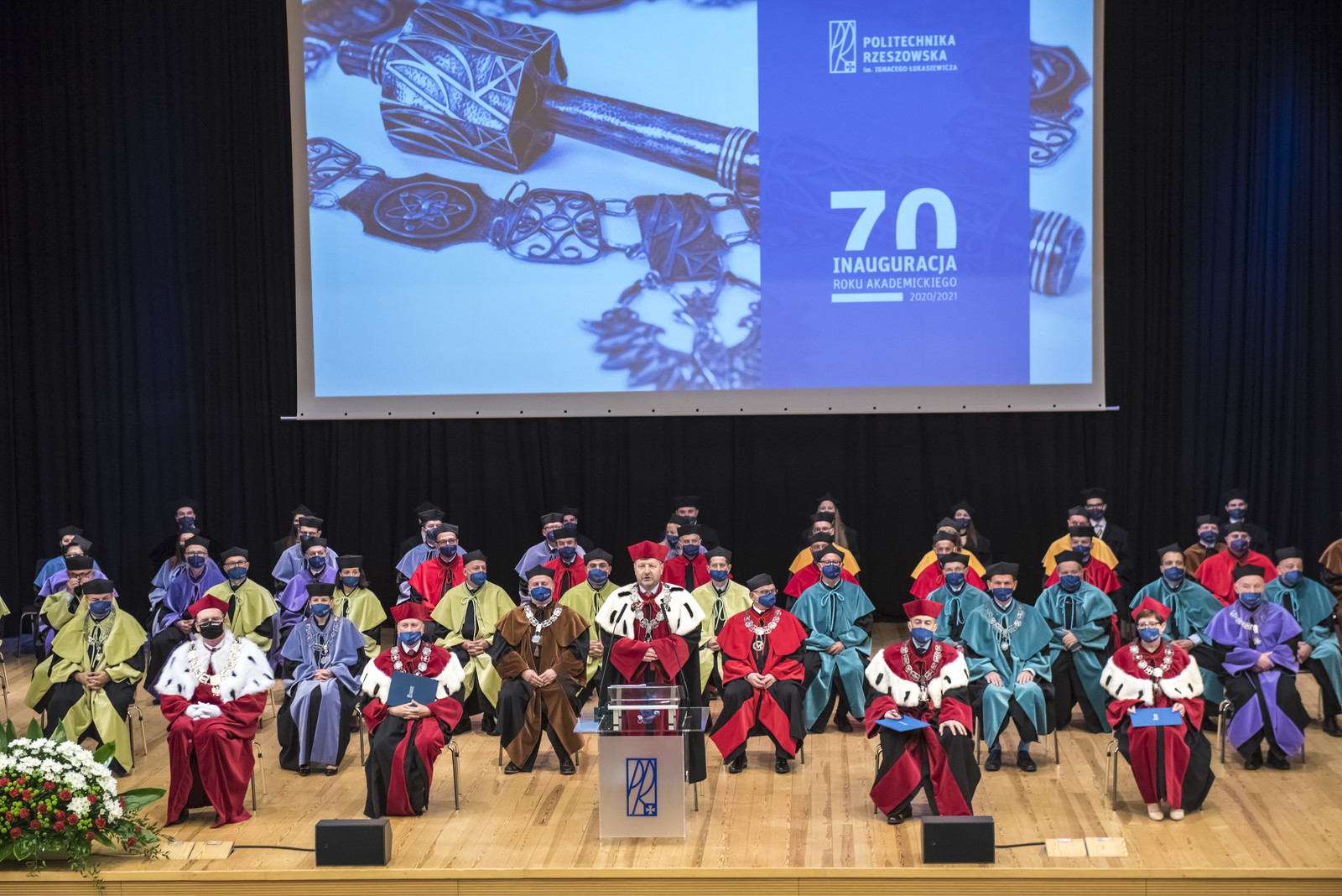 Ze względu na sytuację epidemiczną uroczystość inaugurująca jubileuszowy 70. rok akademicki na naszej uczelni odbyła się w warunkach zaostrzonego reżimu sanitarnego z zachowaniem wszelkich środków ostrożności. Pracownicy, studenci i sympatycy naszej uczelni mogli w niej uczestniczyć w relacji na żywo transmitowanej na kanale YouTube, uczelnianym Facebooku i na antenie Akademickiego Radia i Telewizji Centrum.