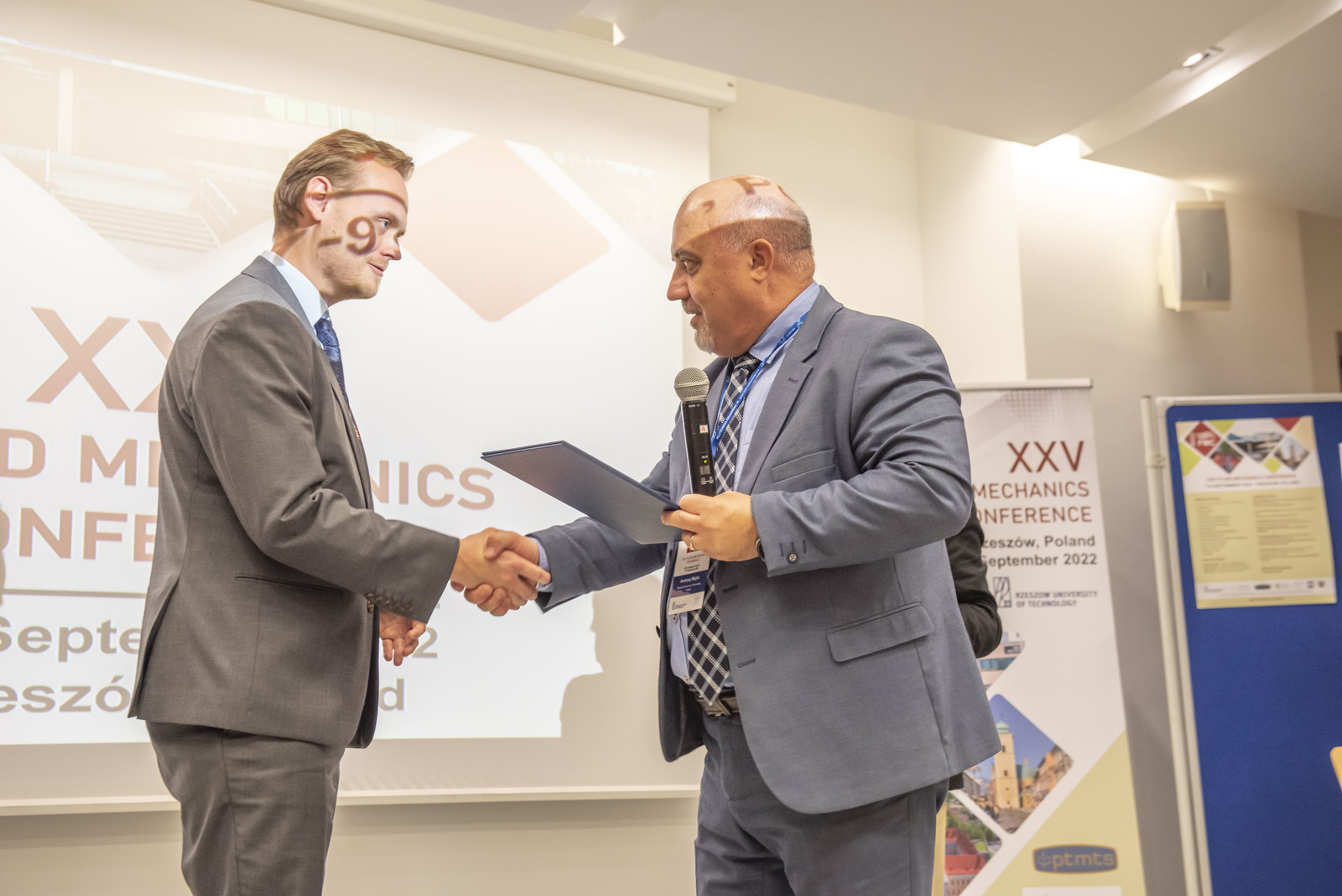 Rektor Politechniki Rzeszowskiej w Konkursie na Najlepszy Plakat przyznał nagrodę zespołowi naukowców z Politechniki Łódzkiej za poster Influence of Tip Speed Ratio on the efficiency of Savonius wind turbine with deformable blades.