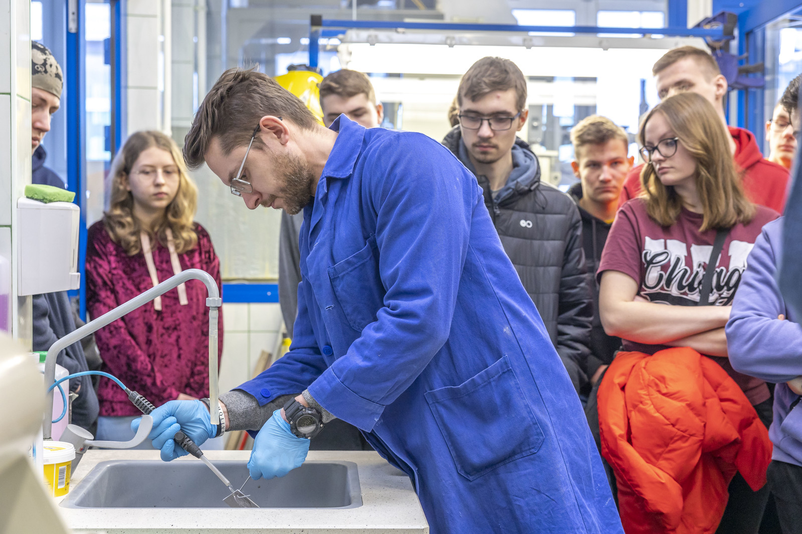 Na Politechnice Rzeszowskiej organizacji Dnia Inżynierii Materiałowej podjęli się pracownicy Katedry Nauki o Materiałach na Wydziale Budowy Maszyn i Lotnictwa. Atrakcją tego dnia była próba ustanowienia rekordu Polski w największej lekcji inżynierii materiałowej prowadzonej równocześnie we wszystkich 15 jednostkach naukowych. Okolicznościową lekcję poprowadził dr hab. inż. Maciej Motyka, prof. PRz, którą rozpoczął krótkim wykładem „Materiały w rozwoju cywilizacji – od narzędzi kamiennych do komputerów”. Zgromadzona młodzież mogła się przekonać, że użycie materiałów przez człowieka odgrywało istotną rolę w rozwoju naszej cywilizacji – od czasów prehistorycznych aż po dzisiejsze, oraz jak odkrycia z tego obszaru kształtowały gospodarki i społeczeństwa na świecie. Lekcję zakończył sprawdzian z wiedzy teoretycznej oraz praktycznej dotyczący posługiwania się prostymi przyrządami inżynierskimi. W lekcji wzięło udział prawie stu uczniów z: Zespołu Szkół Samochodowych w Rzeszowie, IX Liceum Ogólnokształcącego w Rzeszowie, Społecznego Liceum Ogólnokształcącego z Zespołu Szkół Społecznych nr 2 w Rzeszowie oraz Zespołu Szkół Technicznych w Jaśle. Uczniowie mieli również okazję zwiedzić Uczelniane Laboratorium Badań Materiałów dla Przemysłu Lotniczego i zobaczyć nowoczesne urządzenia badawcze i technologiczne. Zorganizowano dla nich warsztaty, na których mogli się dowiedzieć, do czego służą wybrane technologie materiałowe, np. cięcie laserem, nawęglanie stali, natryskiwanie plazmowe czy druk 3D – a co najważniejsze, mogli zobaczyć, jak są realizowane.