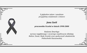 Rodzinie Zmarłego wyrazy najgłębszego i szczerego współczucia składają Rektor, Senat, Rada Uczelni oraz społeczność akademicka Politechniki Rzeszowskiej.