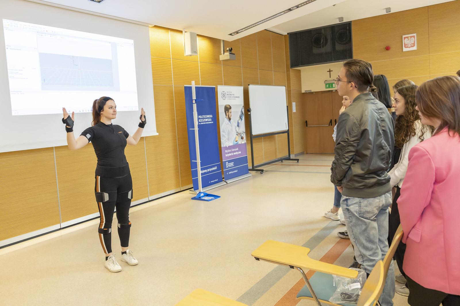 - „Zastosowanie inercyjnego systemu śledzenia ruchu w biomechanice” – prowadząca mgr inż. Wiktoria Wojnarowska z Kołem Naukowym X-med.,