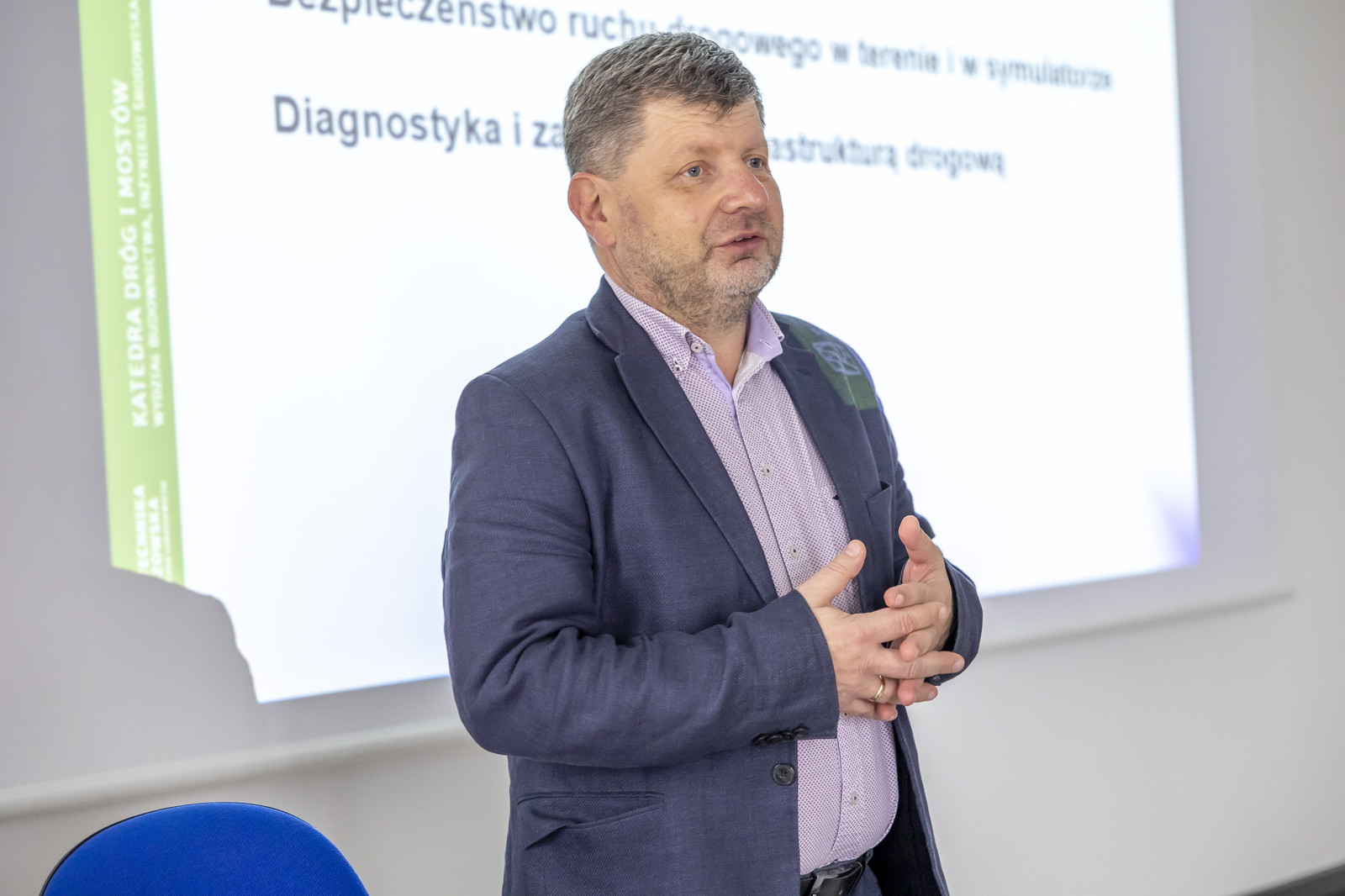 Dr inż. L. Bichajło prezentuje możliwości badawcze Katedry Dróg i Mostów.